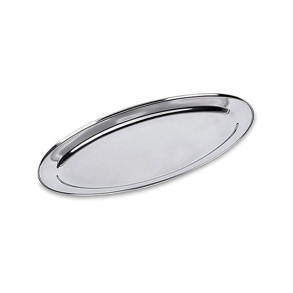 An 18-inch oval stainless steel flat is a spacious serving tray made from durable, polished stainless steel, ideal for presenting food in a professional way. It’s great for events like gala dinners or conferences, where you can use it to display sliced meats, pastries, or appetisers on its smooth surface with a raised edge for easy handling and cleaning.