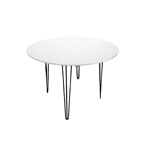 This 4ft Bravo round dining table features a modern design with a circular top that comfortably seats 4–6 diners, making it the perfect choice for all event settings. Its minimalist style allows for its use in many different environments, from casual gatherings to more formal occasions, and it’s available in white with 5 leg options to match your theme. Renting these tables helps you maintain a professional look without the hassle of ownership.