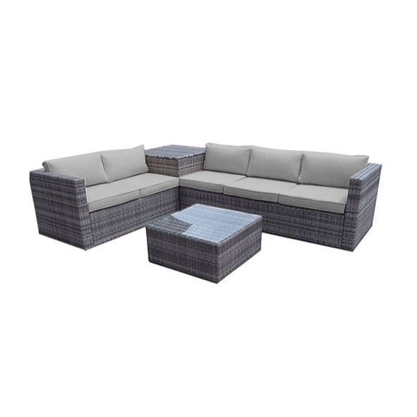 This 5-seater outdoor rattan set provides a comfortable and practical seating option for any outdoor gathering. With its modern design, deep cushions, and a glass-topped coffee table, it’s great for relaxing in hospitality areas or social events. Its durable, weather-resistant frame and versatile features make it a reliable choice for gala dinners, corporate functions, or casual outdoor spaces.