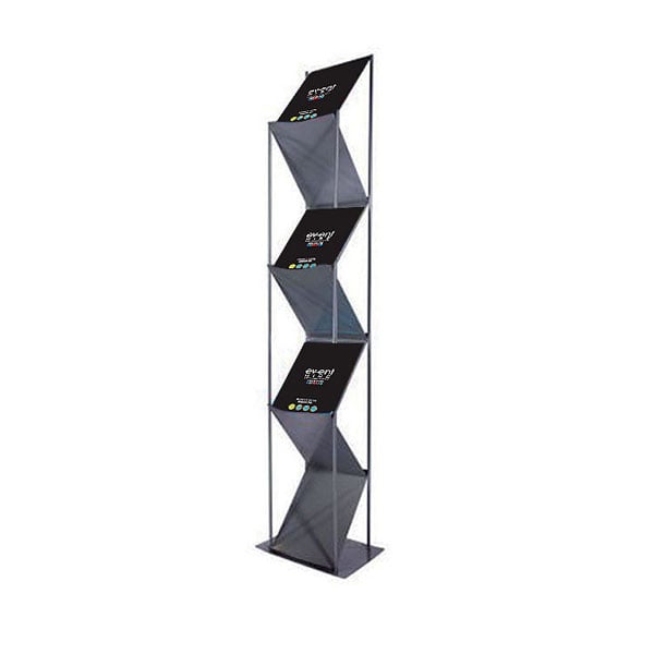 A4 literature rack hire is a straightforward way to keep brochures and printed materials organised and accessible at events like trade shows or business expos. These freestanding, double-sided racks are lightweight and sturdy, making them easy to position and available in various colours to match your setup.
