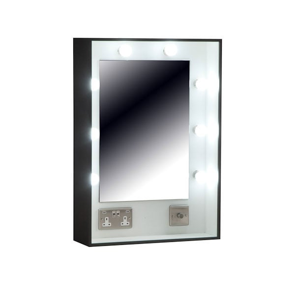 This makeup mirror features a sturdy box design with built-in LED lights, power sockets, and USB ports, making it a handy all-in-one option for quick grooming in busy settings. It delivers clear, adjustable lighting for accurate application while allowing you to charge devices or plug in tools directly, which helps keep things organised. Its compact build and easy setup make it ideal for spaces where efficiency matters most.