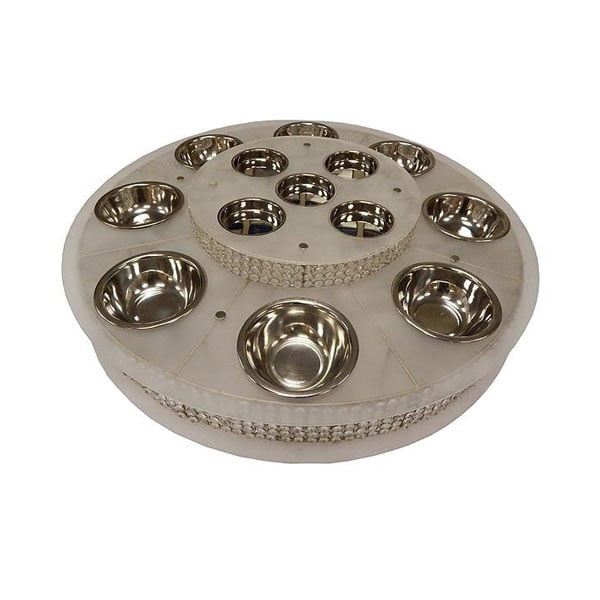 This crystal lazy susan is a practical choice for shared dining, with its two-tiered design featuring removable stainless steel dishes for serving everything from main courses to sides. It rotates smoothly to let guests easily reach food without disturbing the table, and the decorative crystals add a subtle sparkle that enhances the overall look. It’s great for gala dinners and banquets, making meals more convenient and enjoyable.