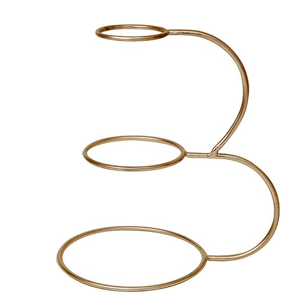 This double C cake stand offers a stylish way to display cakes with its sleek chrome finish and elegant design, making it ideal for gala dinners, anniversaries, and other special occasions. It holds up to three circular cakes in a dramatic tiered layout with symmetrical arched arms that add height and visual interest. Its versatile and affordable nature makes it a practical choice for one-off events, where it can be paired with other items for a complete setup.