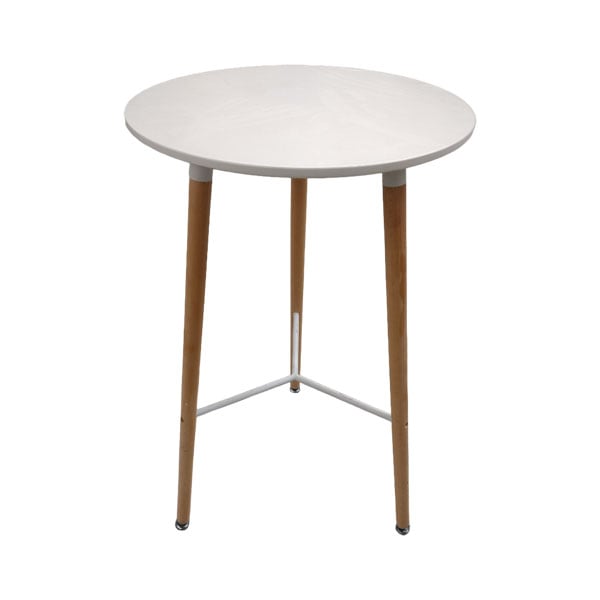 This poseur table features a modern design with clean lines and a simple white circular top supported by sturdy tripod legs, making it ideal for creating standing or casual seating areas at various events. It’s perfect for informal networking spots, drinks stations, or VIP lounges, where its compact form and neutral style blend easily with different settings. Whether you’re setting up a bar area or a corporate reception, this table adds a touch of refined simplicity to any space.