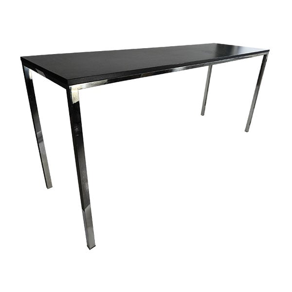 This large high table is ideal for setting up relaxed and stylish areas at events like festivals, sports gatherings, or networking sessions. Its sleek design with polished chrome legs and a smooth tabletop offers both visual appeal and practical use for standing conversations, casual dining, or pairing with stools. Easy to move and adaptable, it’s perfect for creating flexible layouts in temporary spaces.