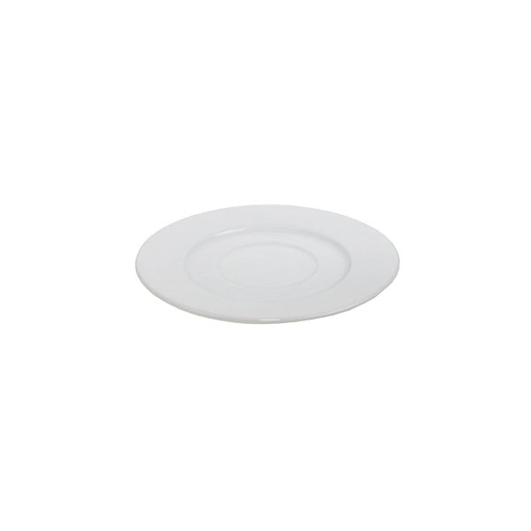 This elegant white espresso saucer pairs perfectly with matching cups, offering a smooth, glossy finish that adds a professional touch to your coffee service at events like hospitality occasions or corporate gatherings. It provides practical space for a spoon, sugar, or a small treat, creating a refined experience for your guests.