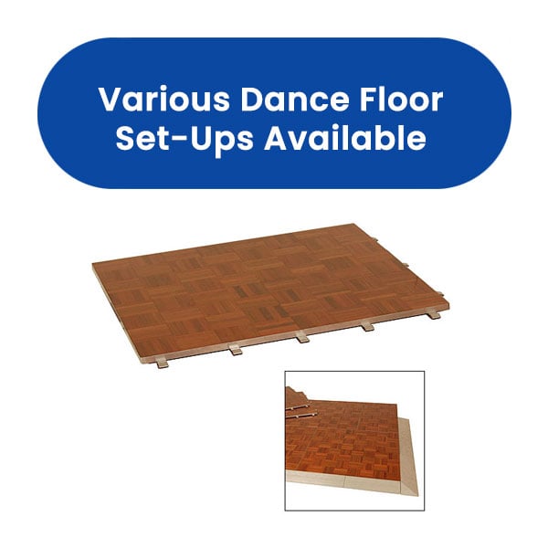 Renting a parquet dance floor set is a great way to add a warm and elegant touch to any event, like a gala dinner, corporate gathering, or private party. It comes in various sizes with an easy-to-assemble design and a sturdy build that ensures safety and comfort for everyone.