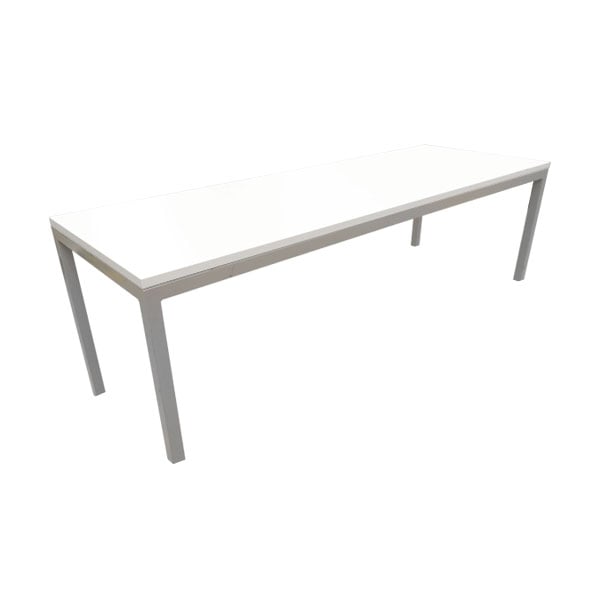 This dining table features a clean white melamine top and a sturdy metal frame, giving it a simple and professional look that’s great for all kinds of events. It’s versatile for things like corporate meetings, informal buffets, or casual gatherings, and its design makes setup easy without the need for a tablecloth. For a polished finish, pair it with matching chairs to create a neat and welcoming space.