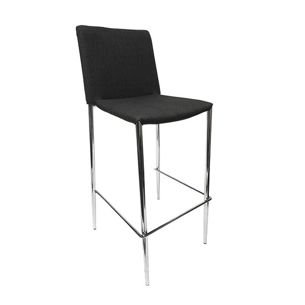 This modern stool features sleek polished chrome legs and a comfortable black fabric seat and back, making it a great option for stylish events like corporate gatherings or temporary bar setups. Its stackable design makes it easy to transport, store, and set up quickly, ideal for short-term use in exhibitions or private occasions.