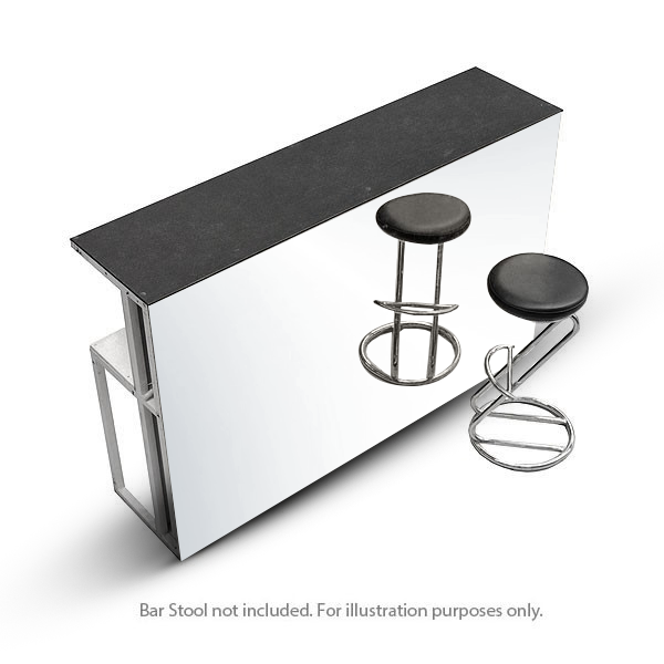 This bar unit features a straight mirror design with a sleek black counter, making it a stylish and modern option for events like gala dinners or corporate gatherings. Its modular setup allows you to use it alone or combine it with other sections for a customised layout, while the built-in rear shelf provides handy storage for glassware and bar supplies.
