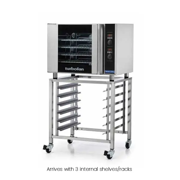 This convection oven with stand is a reliable option for caterers needing a powerful and versatile cooking setup, featuring a compact 3kW unit on wheels that’s perfect for temporary kitchens, events, and mobile operations. It includes three shelves for standard trays, ensuring even heat distribution for tasks like baking, roasting, and reheating, with simple controls and a clear door for easy monitoring. The sturdy, wheeled design makes it easy to move around various settings, and it’s always checked for safety before use.